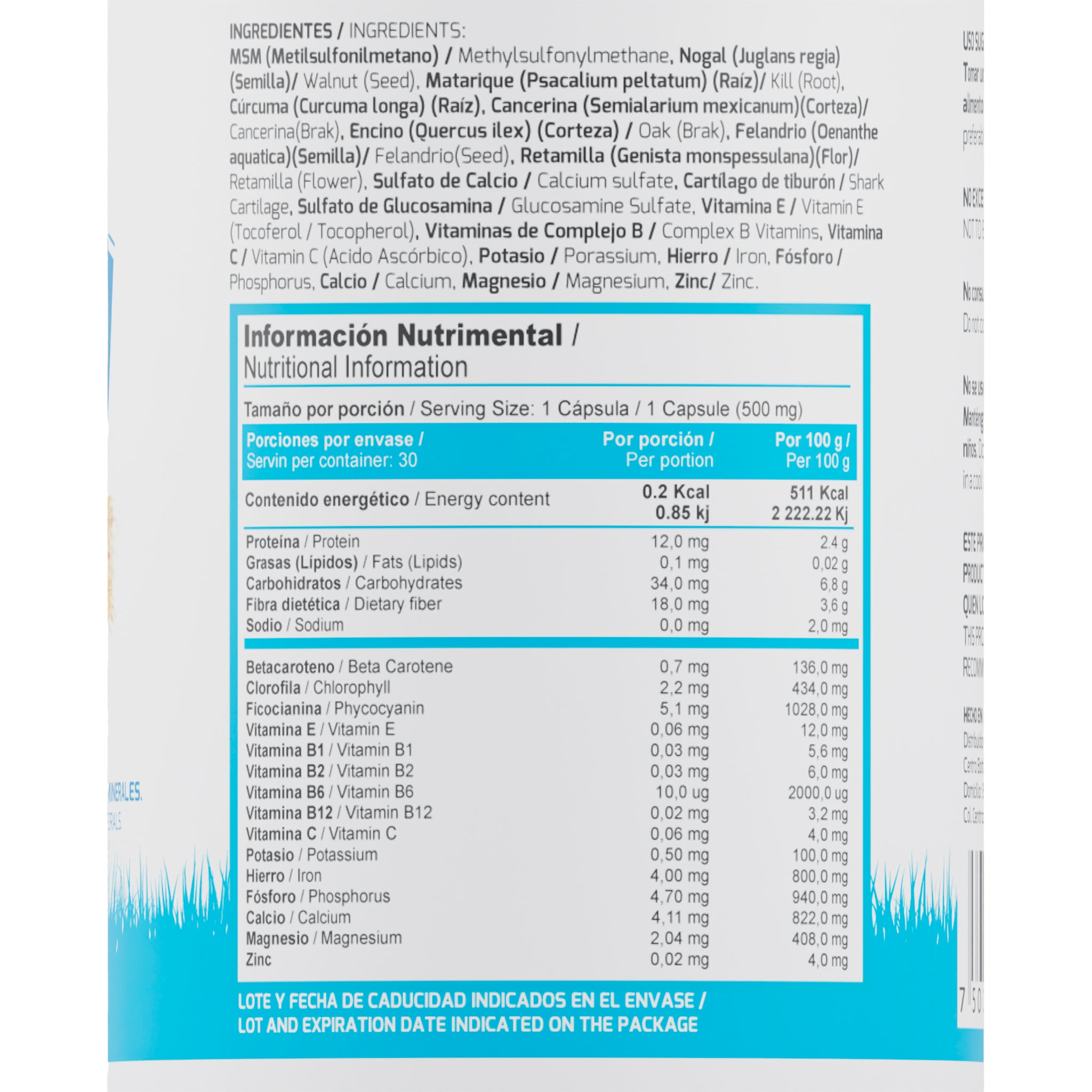 Cuida tu cuerpo. Es el único lugar que tienes para vivir, acompáñalo con Nuyo fórmula a base de Ortiga, Glucosamina y Diente de León cada cápsula contiene 500 mg, y se sugiere tomar 1 cápsula al día, ¡Brinda movimiento A TU VIDA! Un frasco de 30 cápsulas brinda 30 porciones siguiendo el modo de empleo sugerido la cuál es de 1 capsula al día.